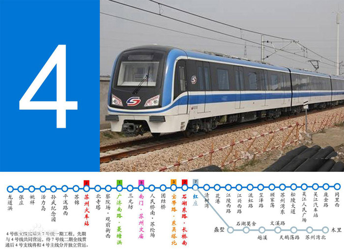 蘇州軌道交通4號線,南北走向,連接相城區、姑蘇區、吳中區和吳江區,是蘇州城市發展的一條骨干線路。...